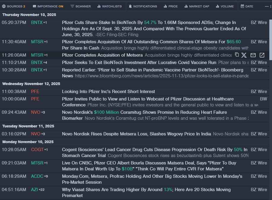 • Benzinga Pro’s real-time newsfeed alerted to latest PFE news.