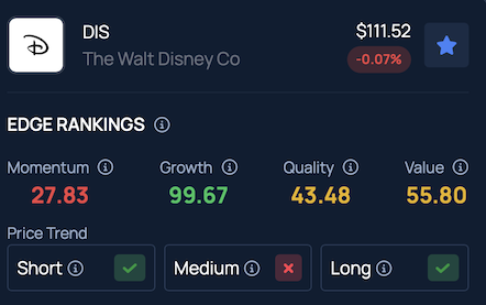 Benzinga’s Edge Stock Rankings rank DIS in the 99th percentile for Growth, with additional insights available on how the company compares with peers across other key performance metrics.
