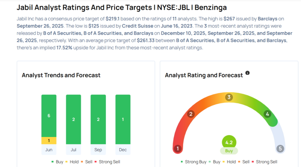 - B of A Securities analyst Ruplu Bhattacharya maintained a Buy rating and raised the price target from $255 to $262 on Dec. 10, 2025. This analyst has an accuracy rate of 68%.