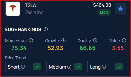Benzinga’s Edge Rankings place Tesla in the 67th percentile for quality and the 53rd percentile for growth, reflecting its average performance in both areas. Check the detailed report here.