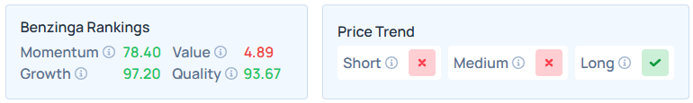 It maintains a weaker price trend over the short and medium terms but a strong trend in the long term, with a poor value ranking. Additional performance details, as per Benzinga’s Edge Stock Rankings, are available here.