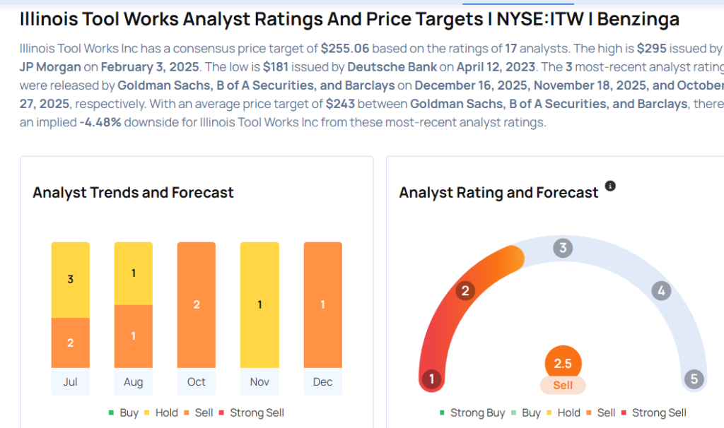 - Goldman Sachs analyst Joe Ritchie downgraded Illinois Tool Works Inc (NYSE:ITW) from Neutral to Sell and cut the price target from $258 to $230. Illinois Tool Works shares closed at $258.66 on Monday. See how other analysts view this stock.