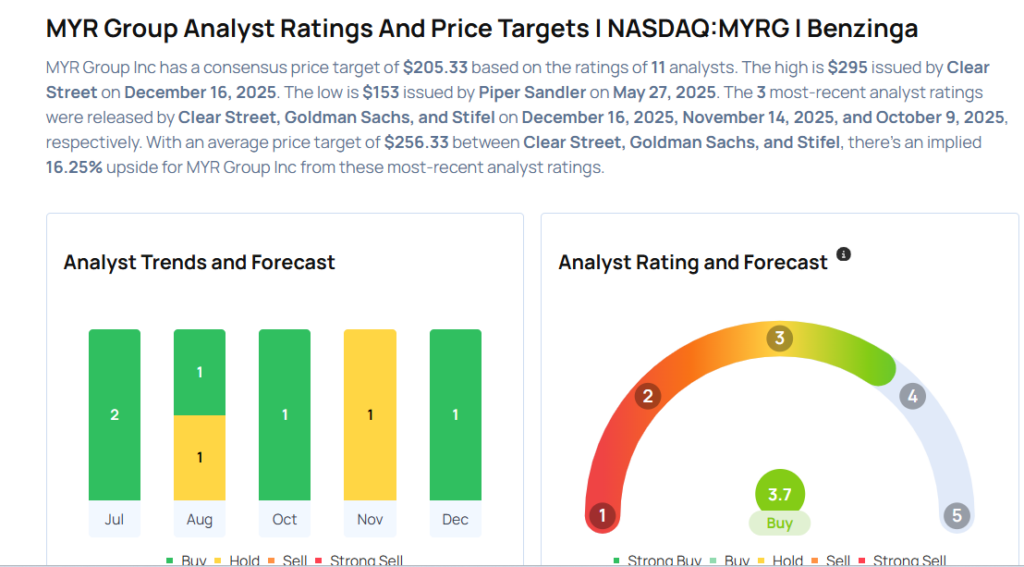 - Clear Street analyst Tim Moore initiated coverage on MYR Group Inc (NASDAQ:MYRG) with a Buy rating and announced a price target of $295. MYR Group shares closed at $220.51 on Monday. See how other analysts view this stock.