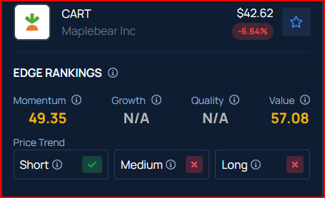 Benzinga’s Edge Rankings place Instacart in the 49th percentile for momentum and the 57th percentile for value, reflecting its average performance in both areas. Check the detailed report here.