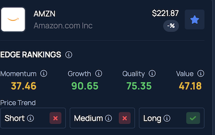Benzinga Edge Stock Rankings show Amazon maintains a strong long-term price trend, while its short and medium-term momentum remains under pressure, with additional performance details available here.
