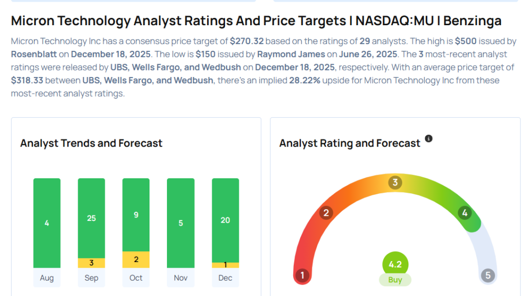 - Wells Fargo analyst Aaron Rakers maintained Micron with an Overweight rating and raised the price target from $300 to $335.
