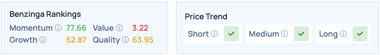 Tesla shares score high on Momentum in Benzinga’s Edge Stock Rankings, with a favorable price trend in the short, medium and long terms. Click here to see how it compares with Google, along with its other peers and competitors.