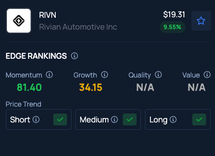 Benzinga Edge Stock Rankings indicate Rivian stock has a Momentum in the 81st percentile. Here is how it ranks against other electric vehicle manufacturers like Tesla.