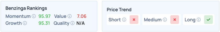 Shares of Robinhood were up 1.17% on Thursday, closing at $117.16, and are up 2.45% overnight. The stock scores high on Momentum and Growth in Benzinga’s Edge Stock Rankings, with a favorable price trend in the long term. Click here for deeper insights into the stock, its peers and competitors.
