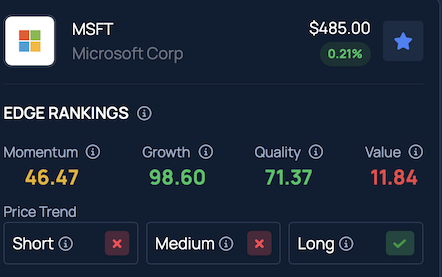 Benzinga Edge Stock Rankings show that Microsoft maintains a favorable long-term outlook, even as its short and medium-term performance trends remain negative, with more detailed metrics available on the platform.
