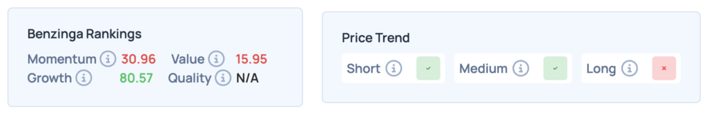 Benzinga’s proprietary Edge Rankings show growth as the strongest category for SBUX, while momentum and value are seen to be lagging. Short and medium-term price trends are also positive.