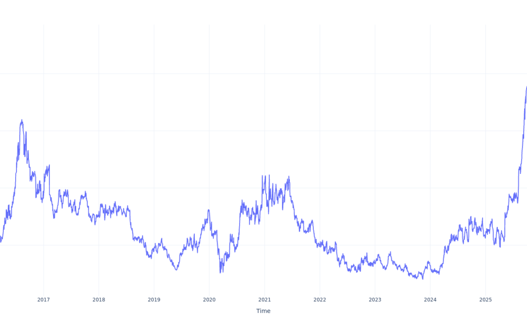 Coeur Mining (NYSE:CDE) has outperformed the market over the past 10 years by 9.73% on an annualized basis producing an average annual return of 22.41%. Currently, Coeur Mining has a market capitalization of $12.13 billion.