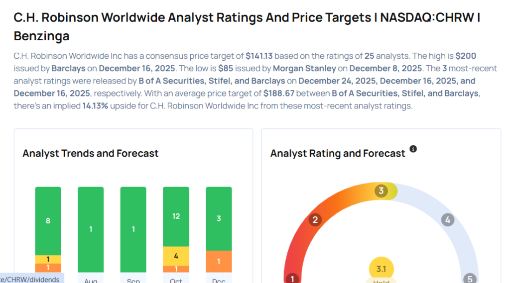 - B of A Securities increased the price target for C.H. Robinson Worldwide, Inc. (NASDAQ:CHRW) from $167 to $182. B of A Securities analyst Ken Hoexter maintained a Buy rating. C.H. Robinson shares settled at $164.59 on Tuesday. See how other analysts view this stock.