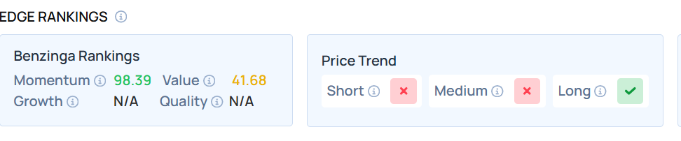 The stock had a stronger price trend in the short, medium and long terms, with a poor value ranking, as per Benzinga’s Edge Stock Rankings. To know more about the stock, click here.