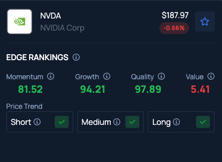 Benzinga Edge Stock Rankings indicate Nvidia stock has a Value in the 5th percentile. Here is how the stock ranks on other metrics.
