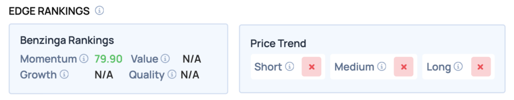 Benzinga Edge Rankings: Benzinga Edge data highlights a Momentum score of 79.90, indicating significant trading activity and interest despite negative signals across short, medium and long-term price trends.