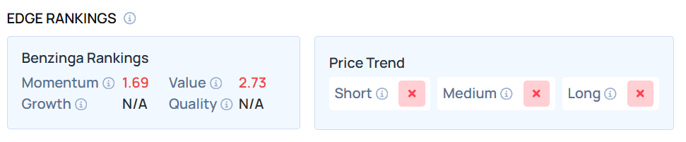 MSTR exhibited a very low Momentum score — a measure of a stock’s relative strength based on its price movement patterns and volatility over multiple timeframes. How does it compare with Coinbase Global Inc. (NASDAQ:COIN) and other cryptocurrency-linked stocks? Visit Benzinga Edge Stock Rankings to find out.