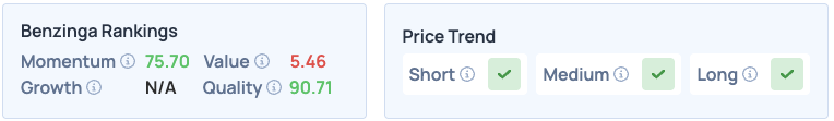 Target scores highly on Value in Benzinga’s Edge Stock Rankings but performs poorly on Momentum and Quality. The stock has a favorable price trend in the short and medium terms. Click here for deeper insights into the stock, its peers and competitors.