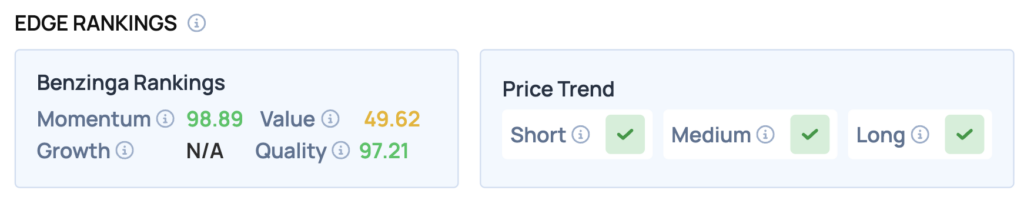 Benzinga Edge Rankings: According to Benzinga Edge stock rankings, which provide four critical scores to help you identify the strongest and weakest stocks to buy and sell, Micron boasts a standout 98.89 Momentum score alongside a 97.21 Quality score.