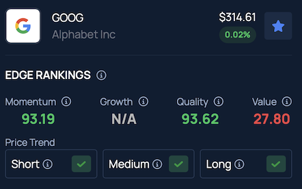 According to Benzinga Edge Rankings, GOOG indicates a positive trend across short, medium and long-term periods. Click here to check how it performs compared to its competitors.