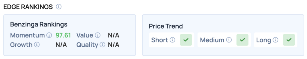 Benzinga Edge data shows Rocket Lab with a Momentum score of 97.61, alongside positive short-, medium- and long-term price trends, underscoring strong technical strength relative to peers.