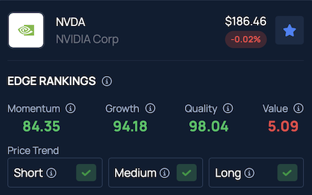 Benzinga Edge Stock Rankings show that Nvidia’s stock maintains a strong price trend across the short, medium and long-term, with further performance indicators available here.