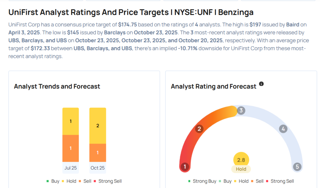 Analysts expect the company to report quarterly earnings at $2.06 per share, down from $2.40 per share in the year-ago period. UniFirst is expected to report revenue of $615.23 million, up from $604.91 million a year earlier, according to Benzinga Pro data.
