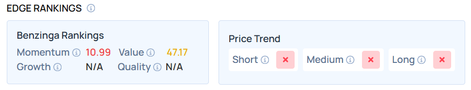 Benzinga’s Edge Stock Rankings indicate that COIN maintains a weaker price trend over the short, medium and long terms. How does it compare with Strategy Inc. (NASDAQ:MSTR) and other cryptocurrency-linked stocks? Find out everything here.