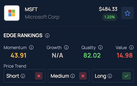 Benzinga’s Edge Stock Rankings place Microsoft in the 82nd percentile for Quality. The company’s price trend is negative over the short and medium term but remains positive over the long term. Click here to see how it stacks up against peers and competitors.
