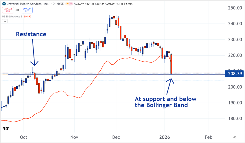 Universal Health Services TA chart, 1.8.2026