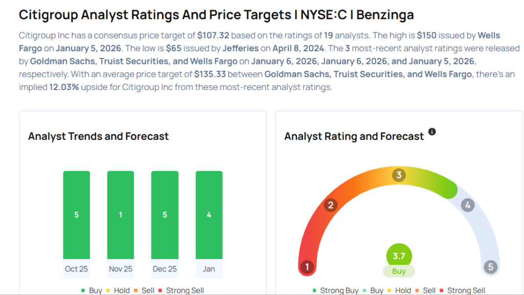 - Wells Fargo analyst Mike Mayo maintained an Overweight rating and raised the price target from $125 to $150 on Jan. 5, 2026. This analyst has an accuracy rate of 73%.