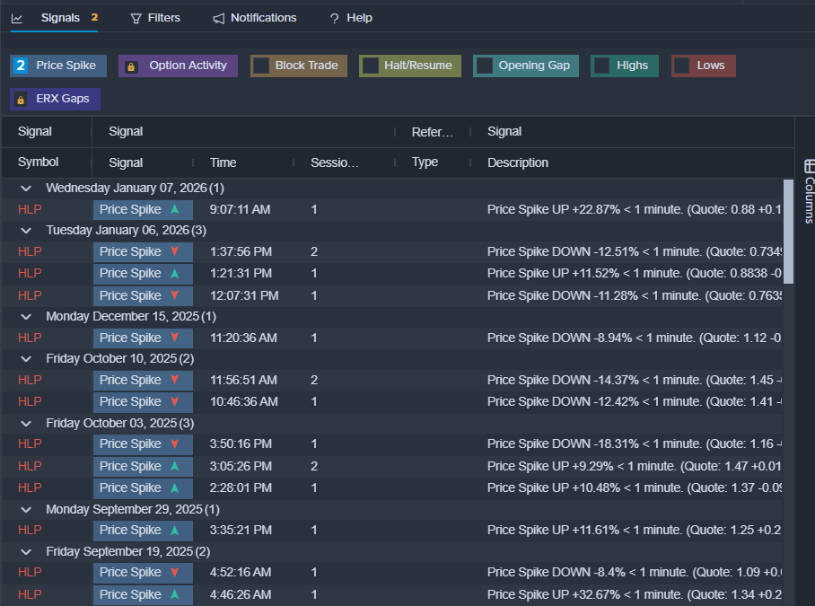 - Benzinga Pro’s signals feature notified of a potential breakout in HLP shares.