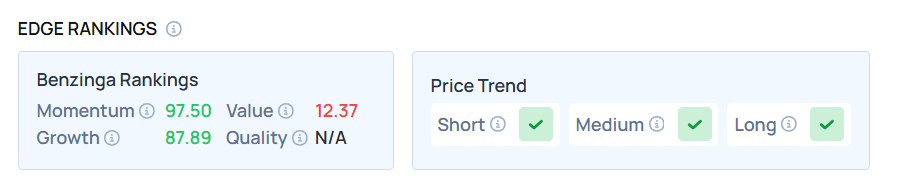 - Edge Stock Ratings: 97.50 Momentum score with Value at 12.37.
