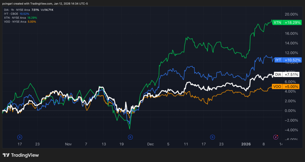 Recent performance shows transportation stocks pulling ahead of the broader market.