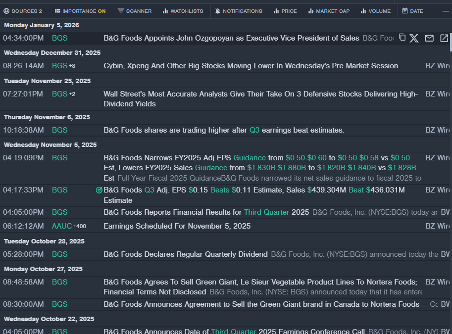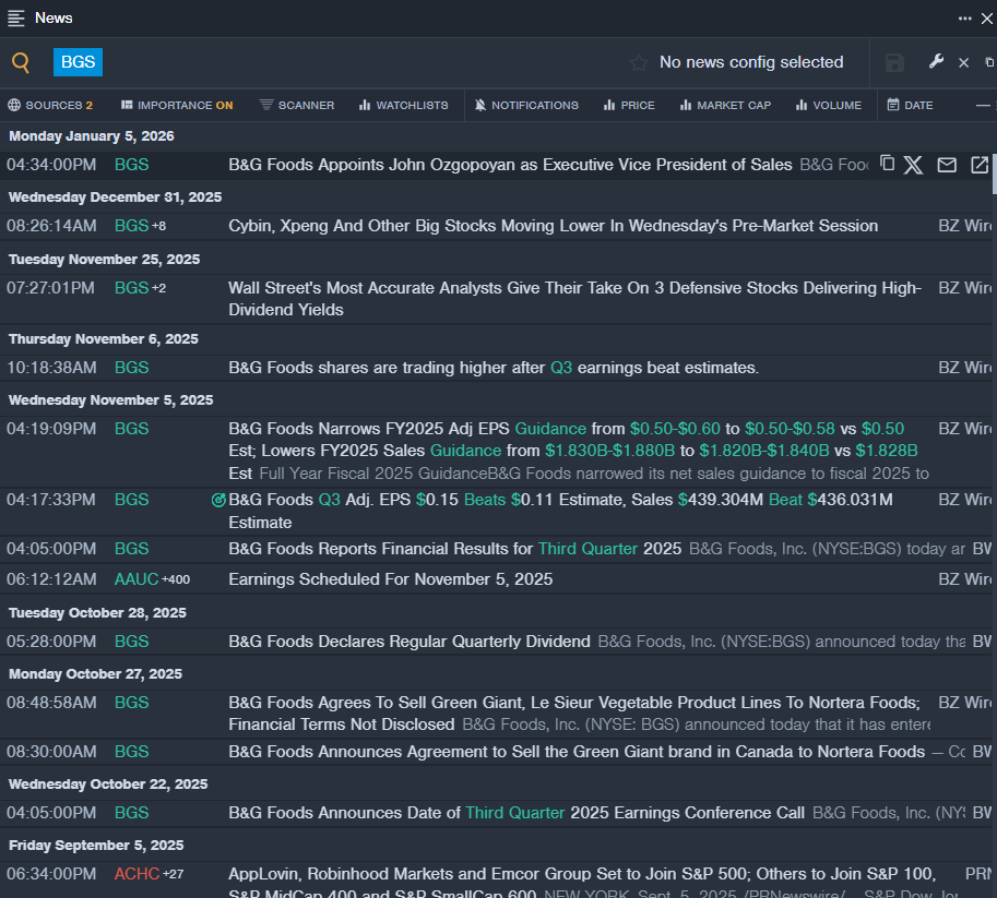 - Recent News: On Jan. 5, B&G Foods named John Ozgopoyan as Executive Vice President of Sales.