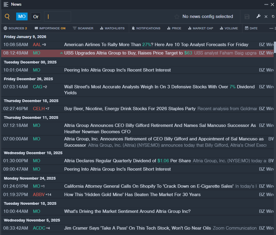 - Benzinga Pro’s real-time newsfeed alerted to latest MO news