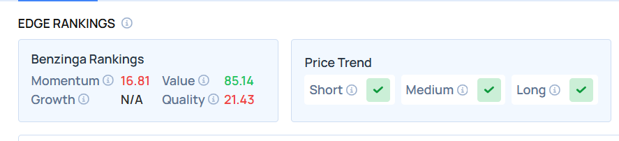 • Edge Stock Ratings: 16.81 Momentum score with Value at 85.14.