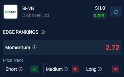 Benzinga’s Edge Stock Rankings indicate that BHVN is showing short-term upward momentum while experiencing medium- and long-term consolidation. Know how its momentum lines up with other well-known names.