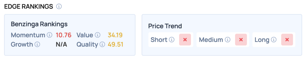The Verdict: Vail Resorts’ Benzinga Edge signal reveals a challenging landscape for the stock. While the Quality score indicates stability, the low Momentum score suggests that investors should be cautious as the stock struggles to find upward traction.