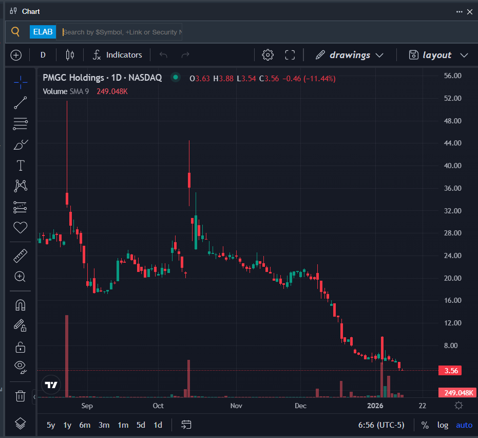 - ELAB Price Action: Shares of PMGC Holdings dipped 11.4% to close at $3.56 on Wednesday.