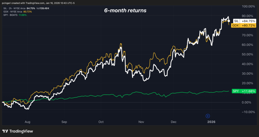 But it’s the mining stocks that have quietly dominated the broader market over multiple timeframes in recent months.