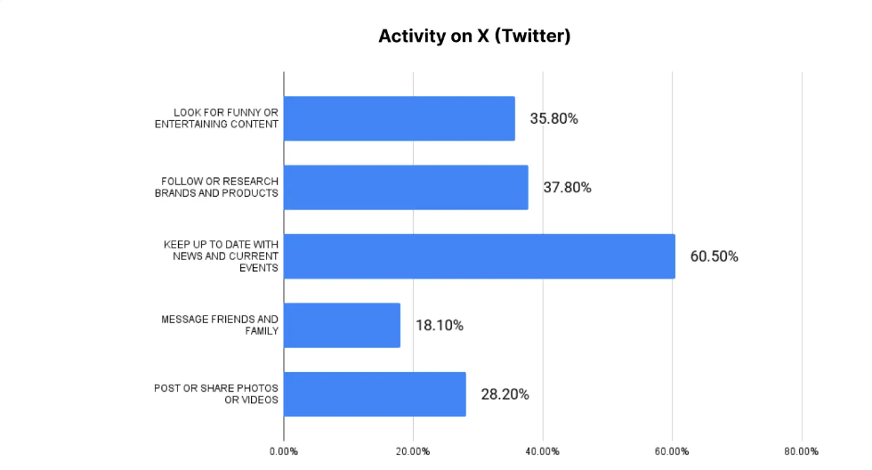 According to RecurPost, the most prominent activity on X is shown in the chart below.