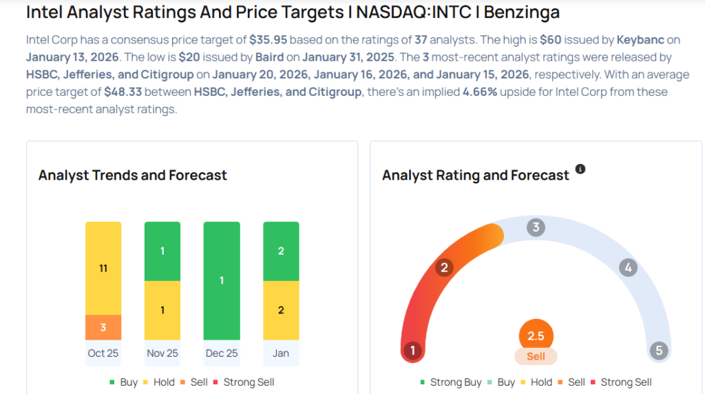 - HSBC analyst Frank Lee upgraded Intel Corp (NASDAQ:INTC) from Reduce to Hold and raised the price target from $26 to $50. Intel shares closed at $46.99 on Friday. See how other analysts view this stock.