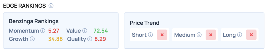 The Verdict: PayPal’s Benzinga Edge signal reveals a mixed outlook. While the strong Value score suggests potential for recovery, the weak Quality and Momentum scores indicate that investors should approach with caution.