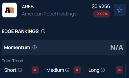 Benzinga’s Edge Stock Rankings indicate AREB stock has a negative price trend across all time frames.