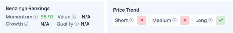 Shares of Opendoor were up 1.41% on Wednesday, closing at $6.48, and are up 1.23% overnight. The stock scores high on Momentum in Benzinga’s Edge Stock Rankings, with a favorable price trend in the long run.