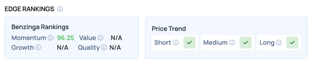 - Momentum: Bullish (Score: 96.25) — Stock is outperforming the broader market.