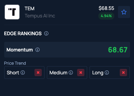 Benzinga Edge Stock Rankings indicate Tempus AI stock has a Momentum in the 68th percentile, but the stock doesn’t check out on the Short, Medium and Long Price Trends.