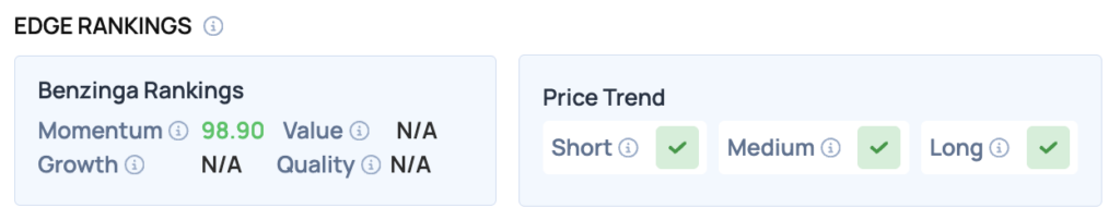 - Momentum: Bullish (Score: 98.9) — Stock is outperforming the broader market.