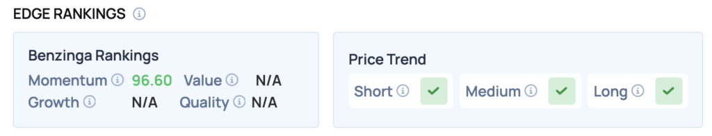 Benzinga Edge Rankings: Benzinga Edge rankings show USAU with extremely strong momentum (96.60) and a positive price trend across short-, medium- and long-term horizons.